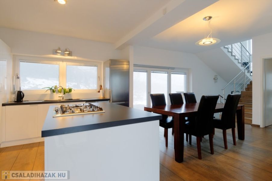 Nagyon modern design ingatlan, magas minőségben felszerelt konyha, természetes fa padlóburkolat mindenhol, modern fürdőszobák, nagy 50m²-es fa terasz és teljesen vezetékes internet és műholdas TV számos szobában.