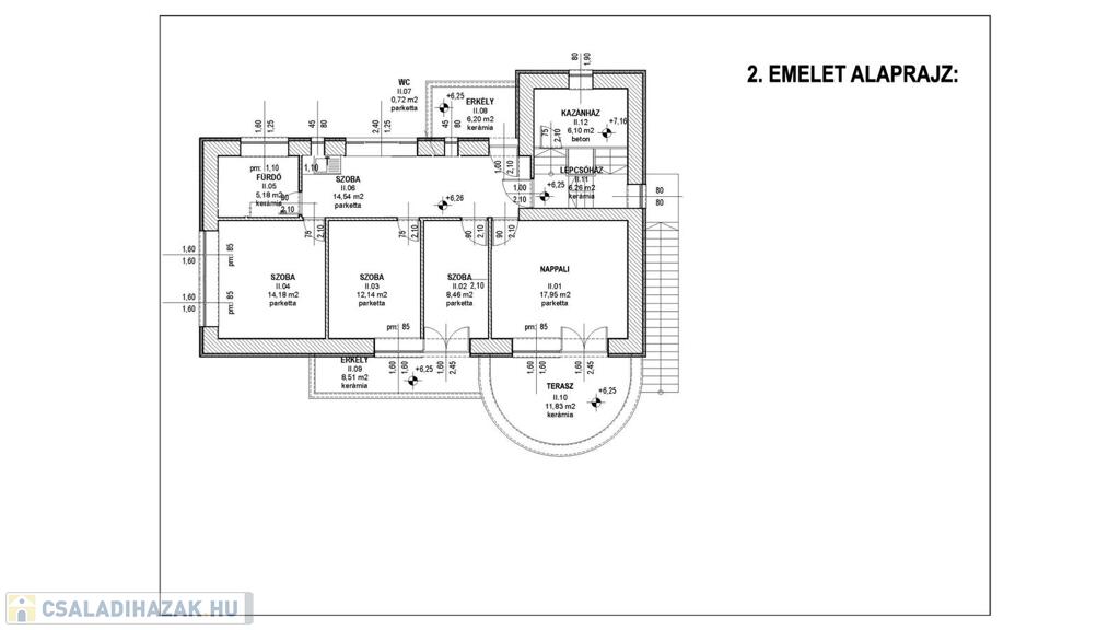 Első és második szint együttes területe 188 négyzetméter, belső két szintes, nappali, konyha, emeleti szinten teakonyha, 5 szoba, 2 fürdő, mellékhelyiség, kamra, mosókonyha, kazán helyiség, valamint élhető nagy panorámás teraszok kerültek kialakításra.