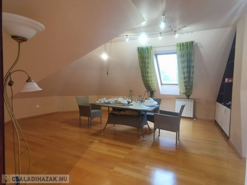 A háromszintes házat folyamatosan karbantartották így ma is egy minőségi otthon. Tágas jó beosztású ingatlan, gyönyörűen beérett kertben a természetvédelmi terület határán de mégis jó közlekedéssel rendelkezik.