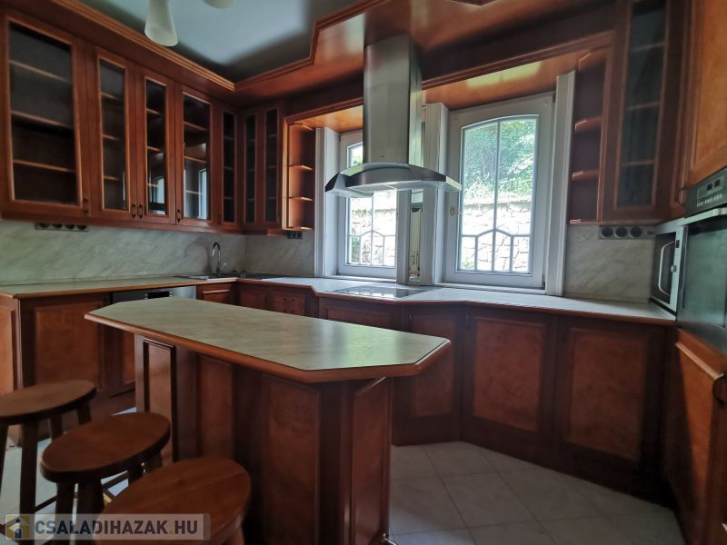 XII. Mártonhegyen, 1998-as építésű, de felújított önálló panorámás nagy villa ápolt kerttel. Az ingatlan kiválóan alkalmas 3 generáció együtt élésére, de akár három lakásként is használható. A-1 szint közös használatú fitnesz szint kondi szobával, jacuzzival, szaunával.