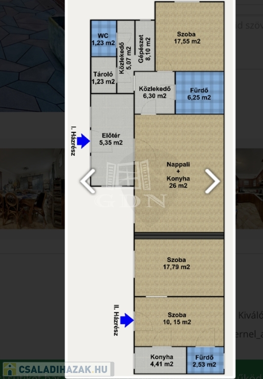 A két lakrész akár egybe is nyitható, közös fallal rendelkezik; akár külön is használható, mint jelen esetben is.