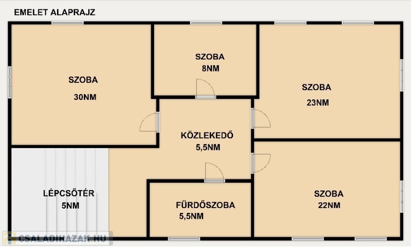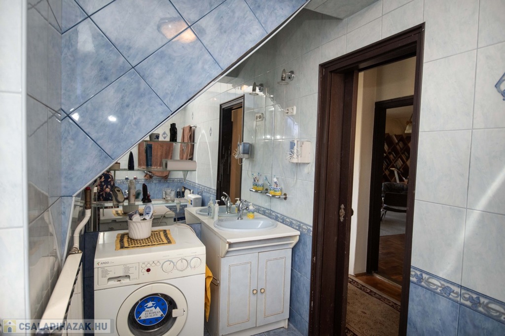 A földszinten zuhanyzós, mosdós toalett található. A lépcsőtér aatti rész kamraként funkcionál. A tágas széles lépcsőtéren keresztül jutunk az emeletre, ahol teljes értékű 4 külön bejáratú hálószoba került kiépítésre, valamint egy tágas kádas fürdőszoba. A ház tetőtere is beépítésre került, buli szobának, vagy egyéb tevékenységre is alkalmas tágas térrel rendelkező helyiség.