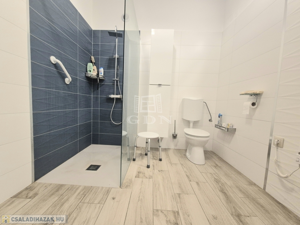 A földszinten lévő, 80 m2-es, két szobás lakás felújított állapotban, korszerűsített gépészettel rendelkezik.