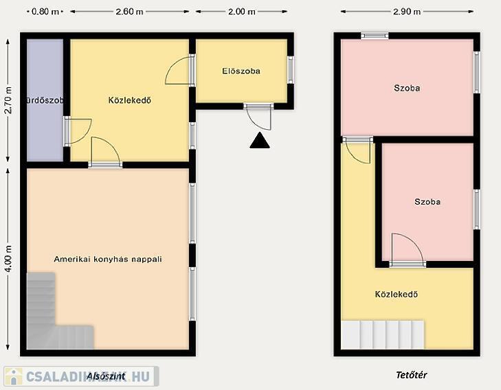 • tetőtérben 2 félszoba, további bővítési lehetőséggel