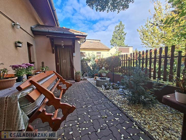 A kert rendezett, autóbeállóval és garázzsal rendelkezik. Az elhelyezkedés kiváló: csendes, barátságos környék, mégis közel a közlekedéshez, iskolákhoz, boltokhoz.