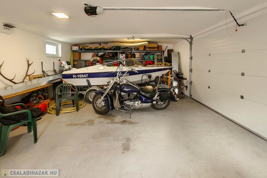 A garázs 40 nm-es, elektromos kapuval felszerelt, fűtött és egy mellékhelység is helyett kapott.