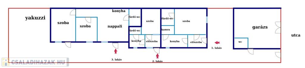 Heységei: előszoba, konyha, kamra, szoba, fürdő-wx