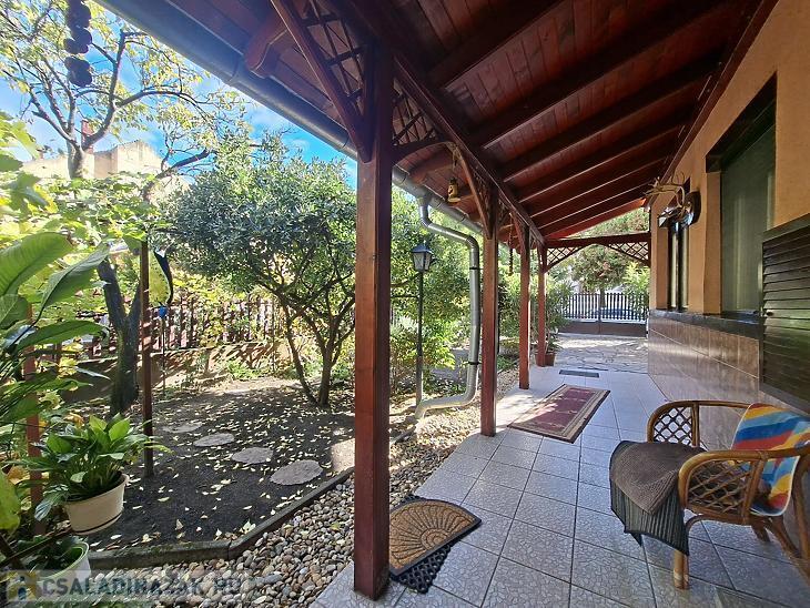 A kert rendezett, autóbeállóval és garázzsal rendelkezik. Az elhelyezkedés kiváló: csendes, barátságos környék, mégis közel a közlekedéshez, iskolákhoz, boltokhoz.