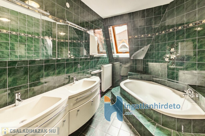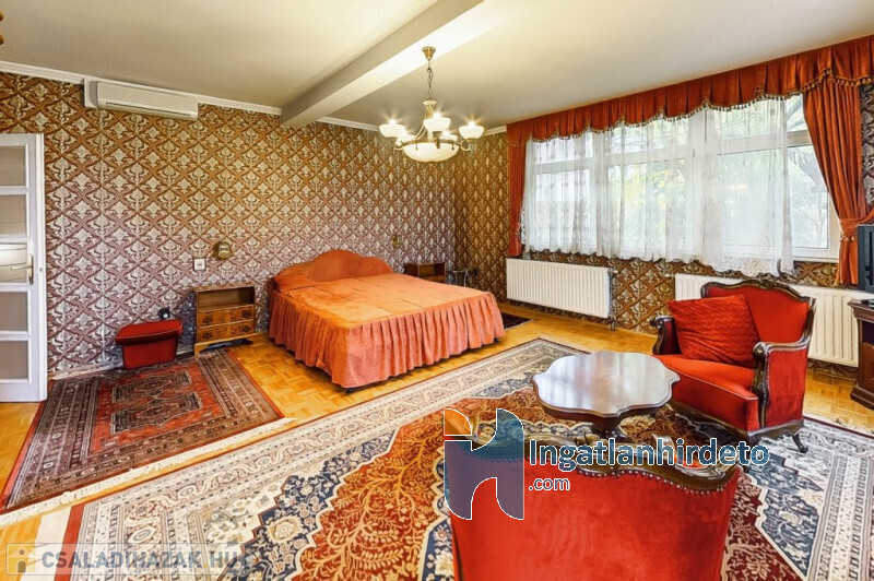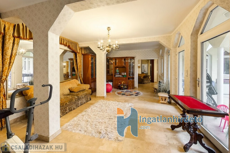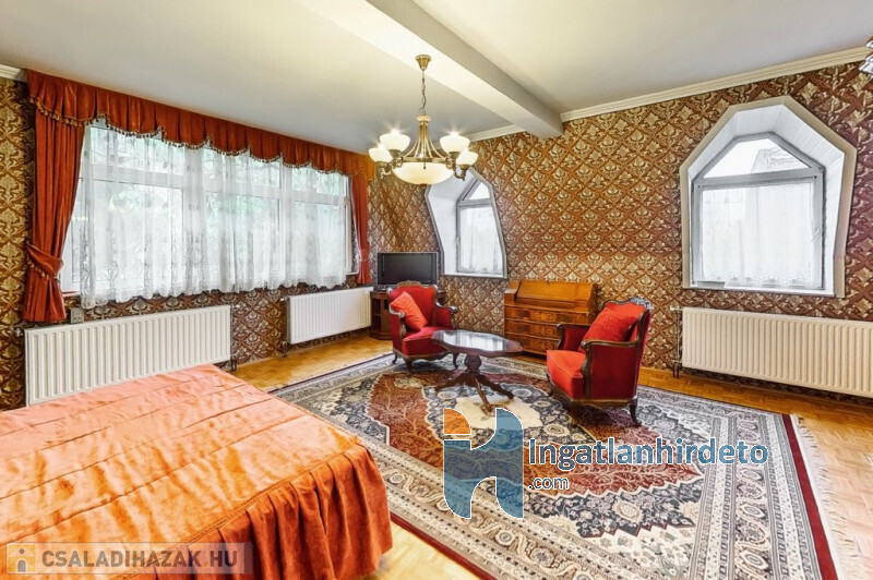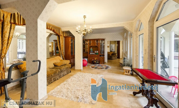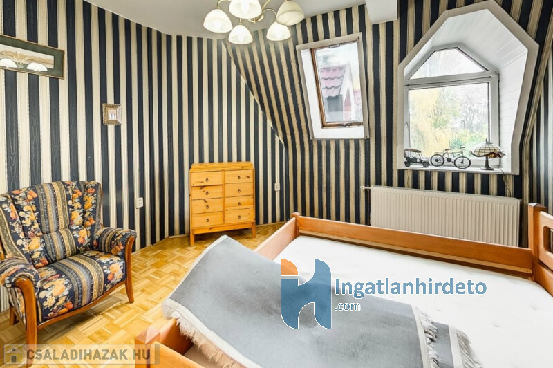 Elhelyezkedése: Belterület Állapota: Jó Komfort besorolása: Luxus komfortos Építési éve: 1993 Alapterülete: 330 m2 Telekterülete: 710 m2 Szobák száma: 7szoba Felújított: Felújított Felújítás éve: 2016 Közművek: Gáz, Víz, Villany, Csatorna Áramellátás: 230V Fűtés típusa: Cirkó Építési mód: Tégla Tető formája: Magas Tető anyaga: Cserép Parkolási lehetőség: Garázsban Napelem: Nincs Jellemzői: Alacsony rezsi Energetikai besorolás: C Egyéb jellemzők: Terasz Tv, Internet: Kábeltévé, Internet Rezsi költség(Ft): 47000