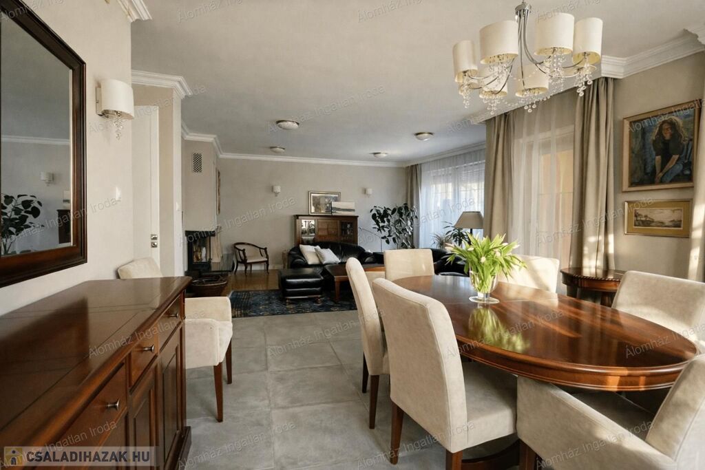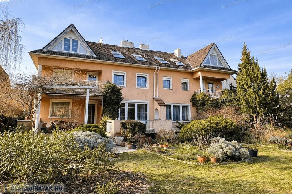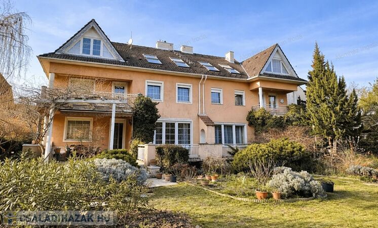 389 m²-es, 7 szobás, kiváló elosztású ikerházfél 550 m²-es saját, körbejárható kerttel.