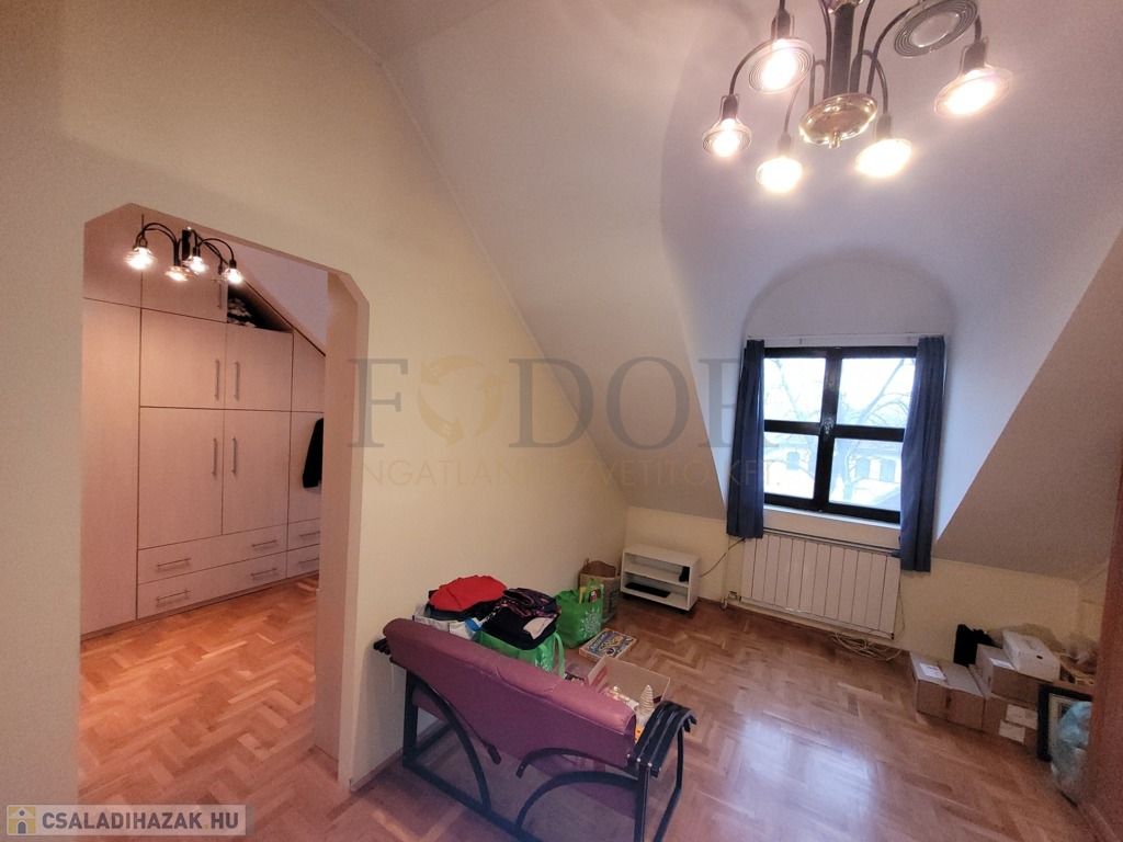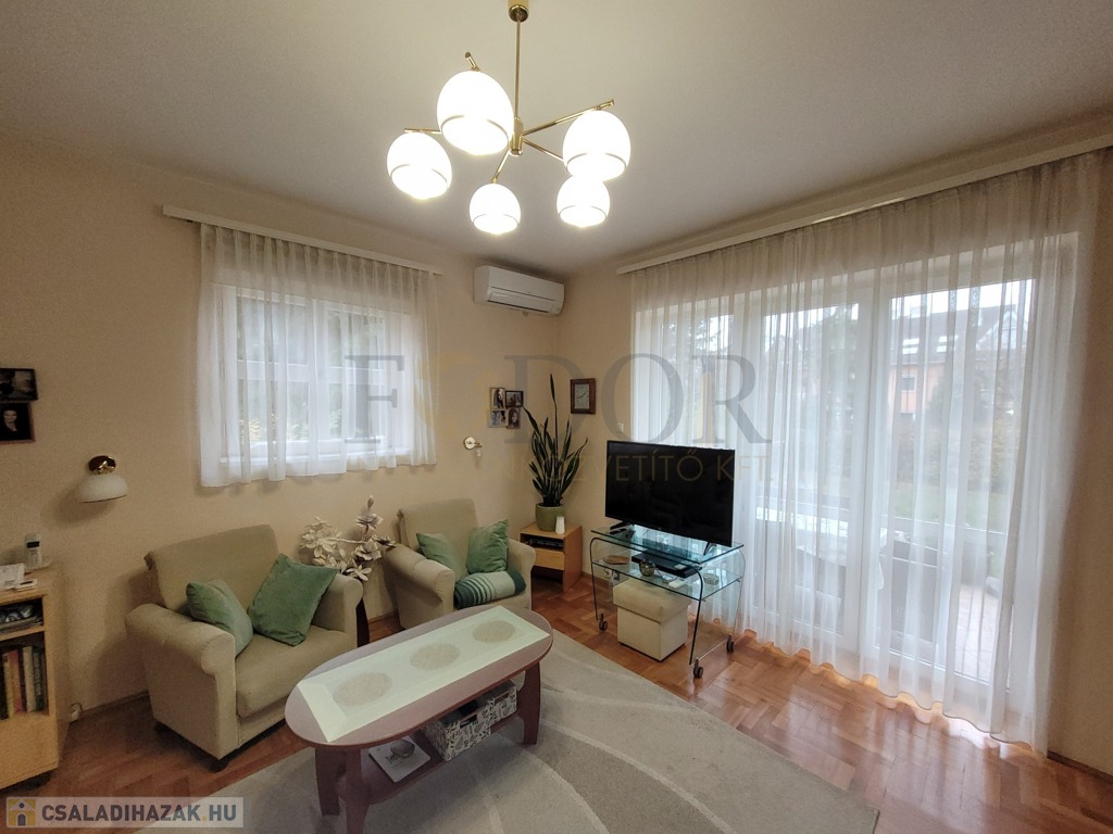 Budapest 19. kerületének csendes, kertvárosias Óváros részén eladásra kínálunk egy 255 m²-es, 3 szintes, ikerház jellegű, ugyanakkor teljesen önálló helyrajzi számmal rendelkező, dupla fallal elválasztott családi házat, amely egyedülálló adottságainak köszönhetően valódi ritkaság.Az ingatlan 1989-ben, hosszas és átgondolt tervezés után épült, így a terek logikusak, élhetők és minden részletében a komfortot szolgálják. A házban összesen