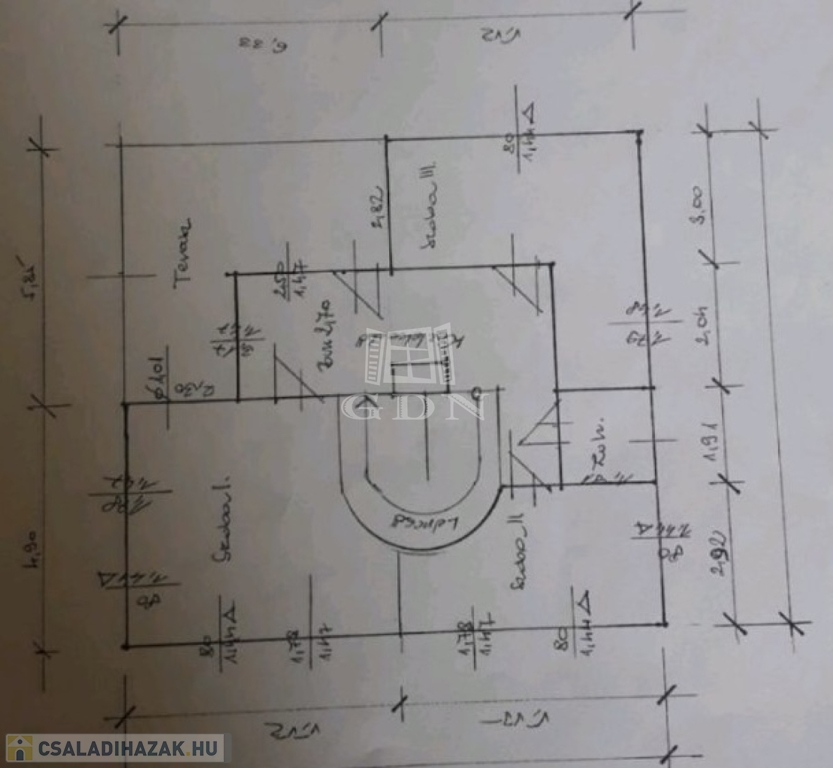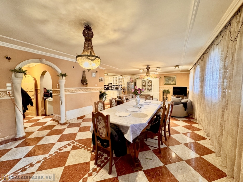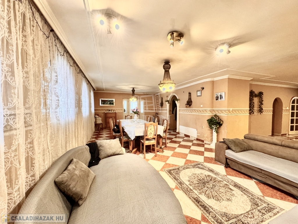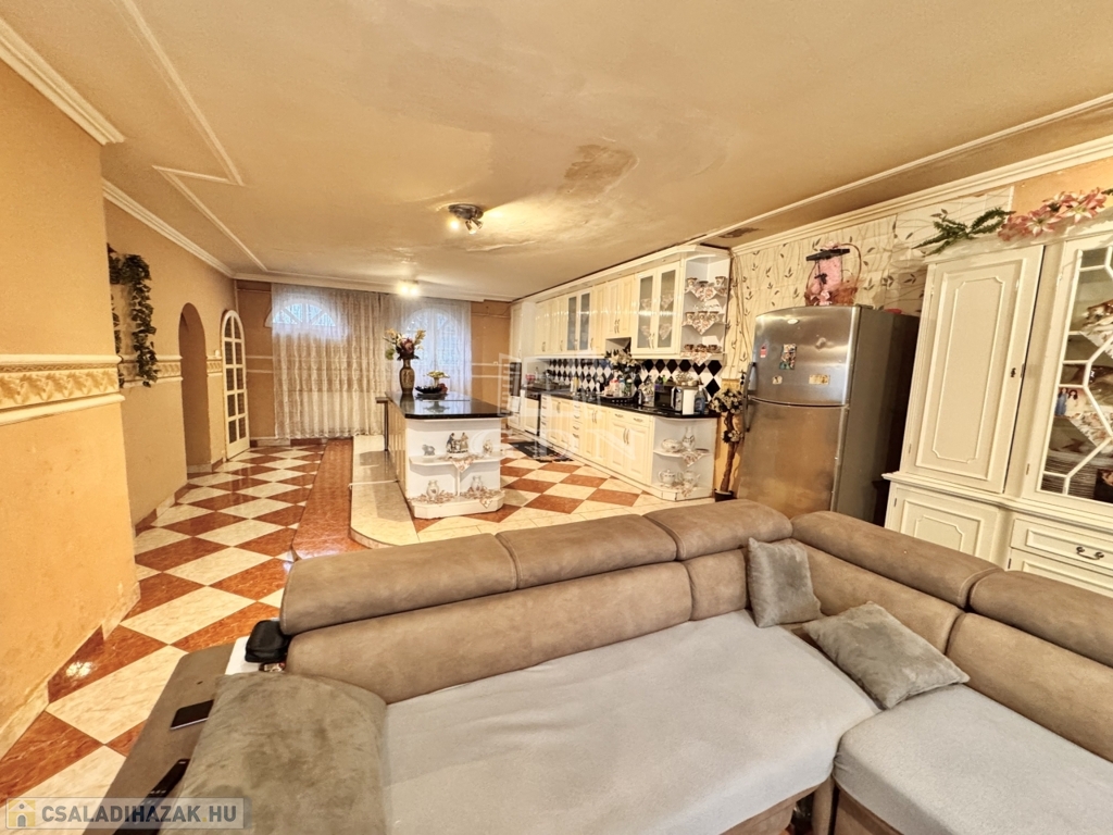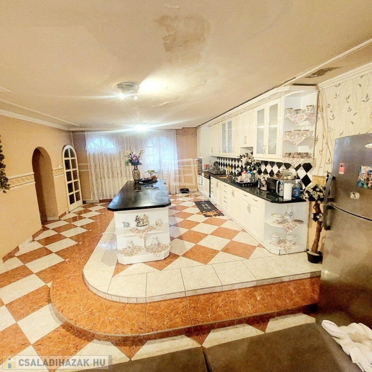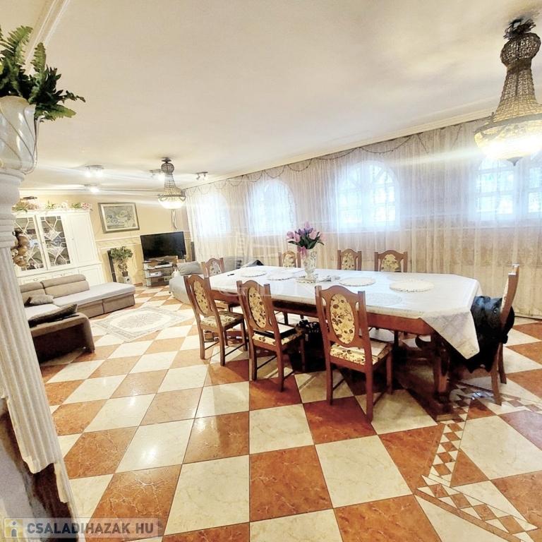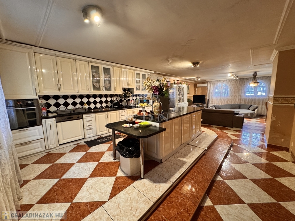 – Fél-szuterén szint: 2,6 m belmagasság, óriási nappali-ebédlő, konyha, fürdő, szoba