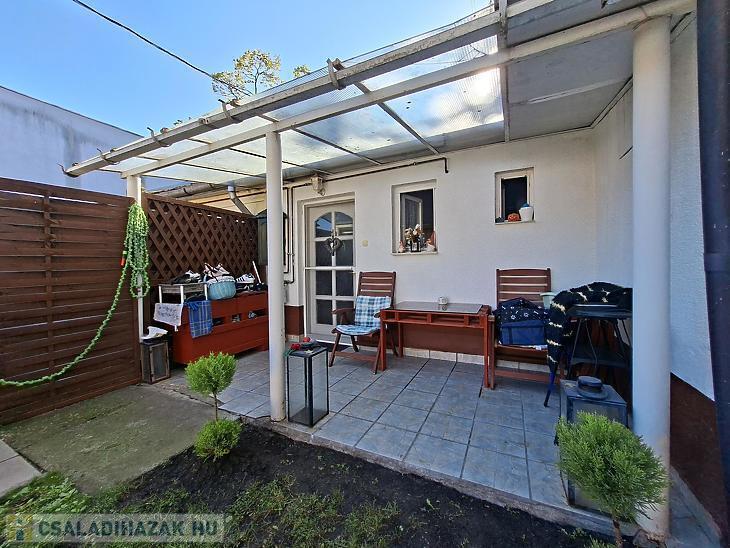 A lakás külön bejárattal rendelkezik, saját, fedett 6 m²-es teraszról közelíthető meg, mely egy teljesen privát, 100 m²-es kertrészhez kapcsolódik – ideális lehet pihenéshez, kertészkedéshez vagy akár kisállattartáshoz is.