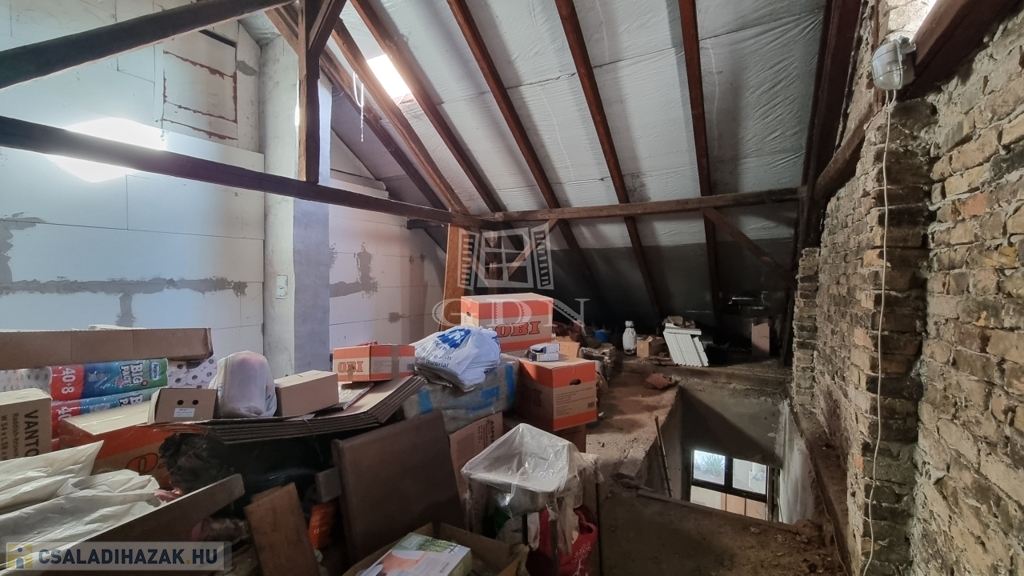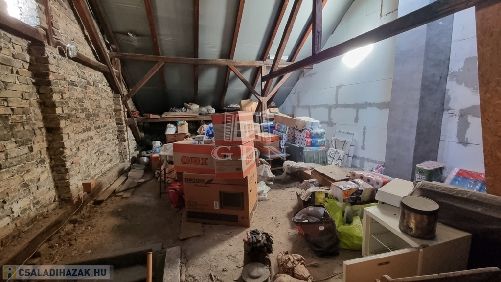 Az ingatlan valódi értékét a saját udvar adja, ahol tároló és garázs is rendelkezésre áll, valamint a bővítési lehetőség. A tetőszerkezet jó állapotú a szarufák 85 cm-es közébe átalakítás nélkül lehet tetőtéri ablakokat tenni, a tetőtérben 1,9 métert meghaladó belmagassággal több mint 40 m² hasznos terület alakítható ki,, amely minimális beruházással tovább növeli az ingatlan értékét és kényelmét. Az épületnek a közepén és a nyugati oldalán is van vizesblokk, így akár az emeleten is lehet fürdőszobát kialakítani.