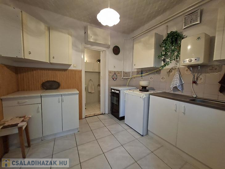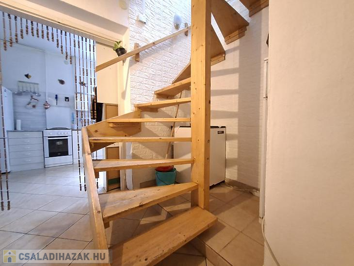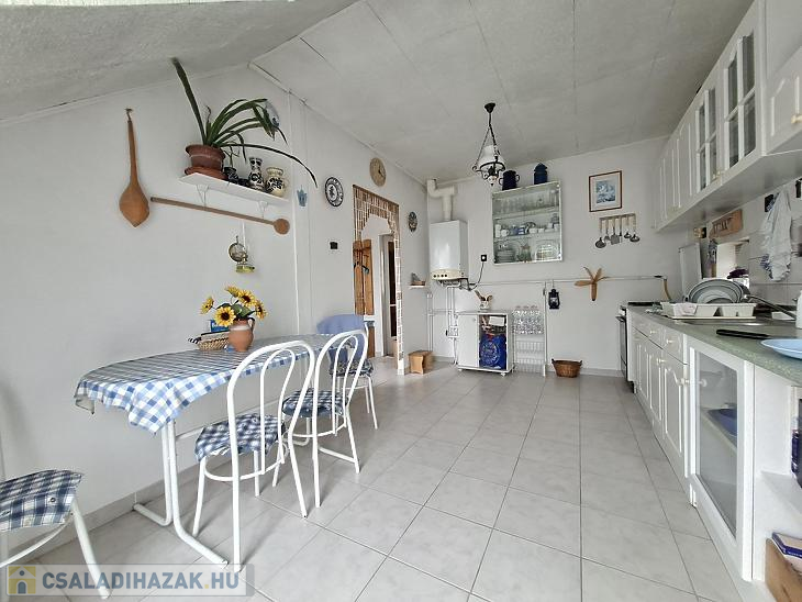 A ház kialakítása praktikus: minden lakrész önálló élettérrel, konyhával és fürdőszobával rendelkezik. A lakófunkciókon túl az ingatlanhoz tartozik egy 14 m²-es pince, valamint egy szintén 14 m²-es tárolóhelyiség is.