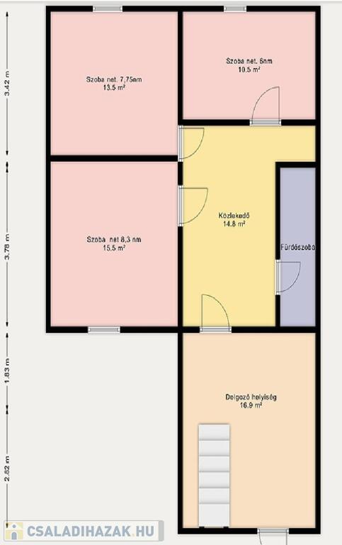 Elrendezés: belső két szint, 4 külön nyíló szoba – kiváló családoknak vagy akár két generációnak is