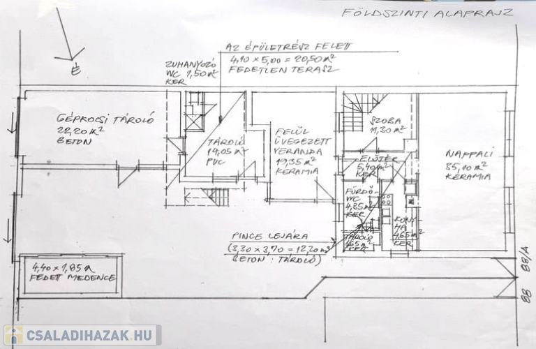 A kétszintes épület kiváló állapotú, akár nagyobb család számára is ideális választás lehet.