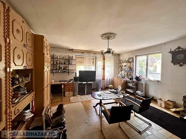 Esztétikai és műszaki felújítást igényel. A fűtést gázkazán biztosítja. Egy mélyaknás garázs és épített medence is rendelkezésre áll.