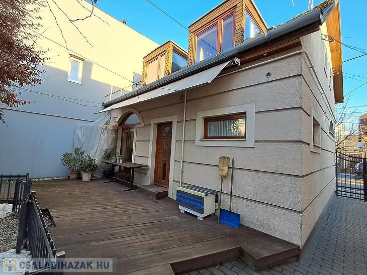 XV. KERÜLETBEN: RÁKOSPALOTÁN, CSALÁDI HÁZAS KÖRNYEZETBEN, ELADÓ EGY 90 M2, AMERIKAI KONYHÁS NAPPALIS, 3 SZOBÁS, JÓ ÁLLAPOTÚ, EGYEDI KIALAKÍTÁSÚ CSALÁDI HÁZ, 360 M2 TELEKKEL, GARÁZZSAL, MŰHELLYEL, TÁROLÓVAL, TÁGAS TERASSZAL.