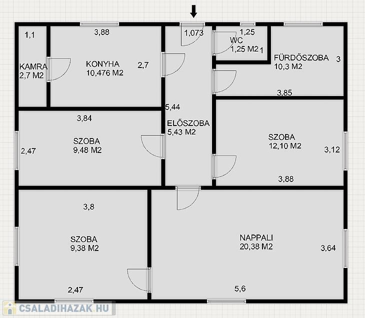 Konyha, 2+ 2 félszoba, fürdőszoba, kamra, mellékhelyiség, pince, padlás került kialakításra.