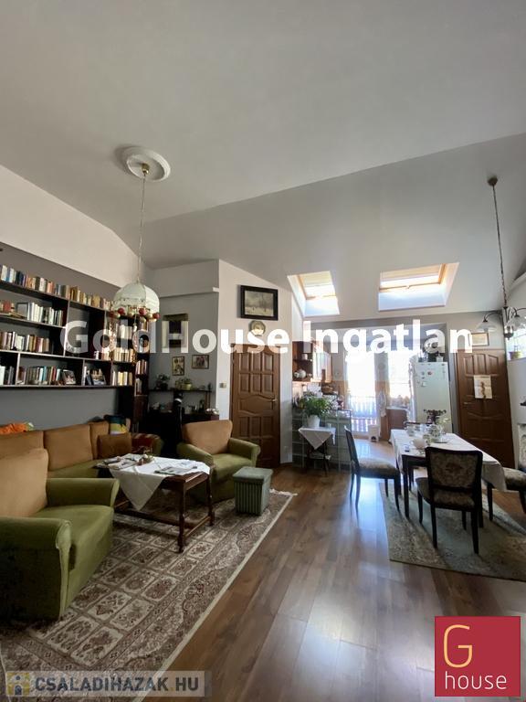 A tetőtér beépítés 16 évvel ezelőtt történt. Hatalmas amerikai konyhás nappali került kialakításra valamint 2 hálószoba és sarokkádas fürdőszoba. Tetőtér lévén a belmagasság nagy, több mint 3 méter.