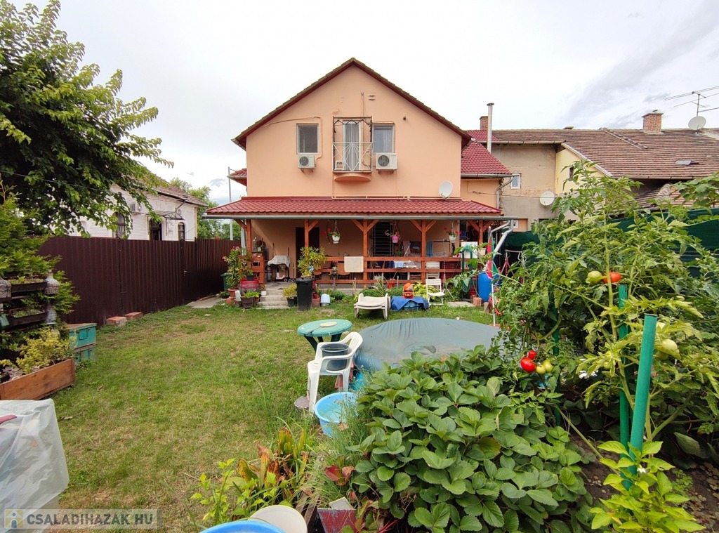 Eladásra kínálok Budapest XV. kerületében, Rákospalotán, egy 409 nm alapterületű telken álló, 225 nm-es (ebből a földszint 129 nm, az emelet 80 nm), 2 szintes, 5 egész és 4 fél szobás, 181 nm-es kertel, akár 2-3 generációnak is kiválóan alkalmas, dupla komfortos, közepes állapotú, de korszerűsített emeleti lakrésszel, udvari gépkocsi parkolási lehetőséggel, fedett terasszal, riasztó és kamera rendszerrel, klímával, 20 nm-es pincével, 181 nm-es saját kerttel, az alsó szint többféle vállalkozás megnyitására is alkalmas, az alsó szinten jó állapotú lakás/irodahelyiséget, kandalló és cirkó fűtéssel is ellátva, kiváló helyen.