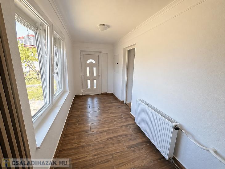 A főépület 108 m2, 3 szoba, konyha, előszoba, gardrób, fürdőszoba és mellékhelyiség került itt kialakításra. A nyílászárók 2 évesek, műanyagok, hőszigeteltek. A villanyhálózat réz. Az összes burkolat új. A fűtést Bosch kondenzációs kazán és lapradiátorok biztosítják, 2 db. hűtő -fűtő klíma is beszerelésre került. A modern, gépesített konyhabútor a vételár részét képezi.