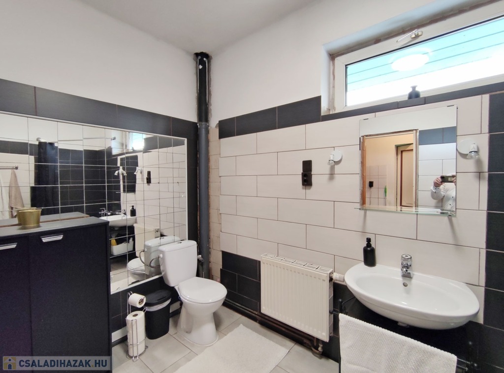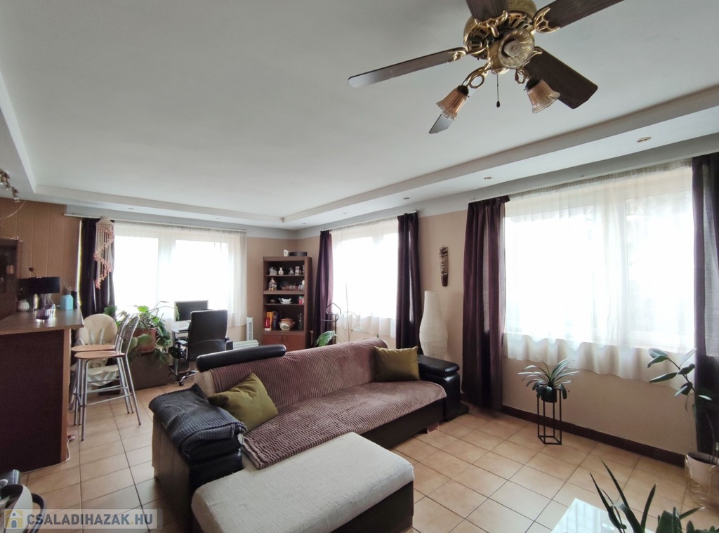 Az egész családi ház alagsor + 2 szinten egyben 1986-ben épült zsaluköves kibetonozott alapzattal, pincével, az akkori előírások szerint megfelelő vízszigeteléssel, 42-es és 30-as vasbeton gerendás födémszerkezettel 60/19-es béléselemek, UNIFORM 14/19-es tégla falazat, 6-os és 10-es válaszfalak alkalmazásával, tetőtér beépítéses tetőszerkezettel, Bramac cserép héjalással, északnyugati fekvéssel, remek elosztású szobákkal, szintenként nagyon tágas nappalikkal. A legfelső szintet pedig 1996-ban építették be. A ház minden szempontból kellően világos.