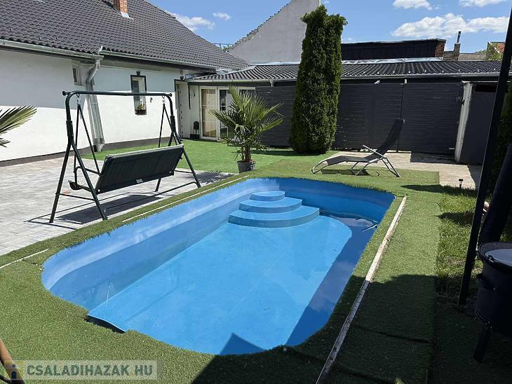 Az épület az 1950-es években épült, 2024-ben esett át felújításon. Ekkor a gerendák többségét, és a tetőléceket, cserepeket cserélték, új tetőfóliát, kőzet gyapot szigetelést, valamint egy külső 20 cm-es hungarocell szigetelést kapott a ház. A víz-, villanyhálózat is cserélve lett. Új műagyag hőszigetelt ablakok lettek beszerelve, valamint új burkolatok. A vételár részét képezi a jakuzzi, szauna, medence, kerti bútorok, grillsütő valamint a konyhabútor a beépített gépesítéssel együtt. A fűtést 3 db. hűtő-fűtő klíma biztosítja. A térkövezett udvarra több autóval is be lehet állni.