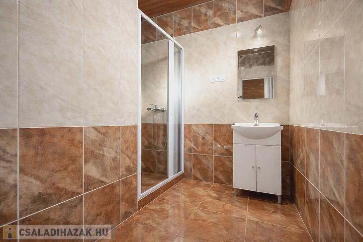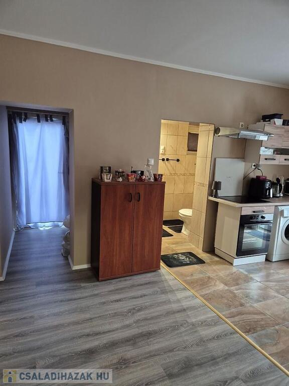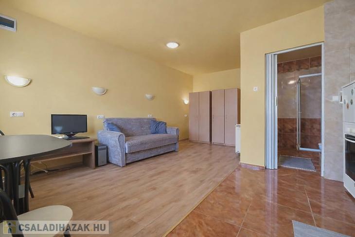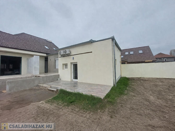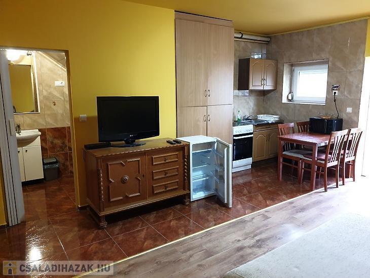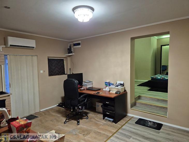 A 45 m2-részben amerikai konyhás nappali, hálószoba, fürdőszoba található, illetve terasz. Kívülről szigetelt, a villanyhálózat cserélve lett. A nyílászárók műanyagok, hőszigeteltek. A hűtés-fűtés 2 db. klímával megoldott („H” tarifa kialakítva).