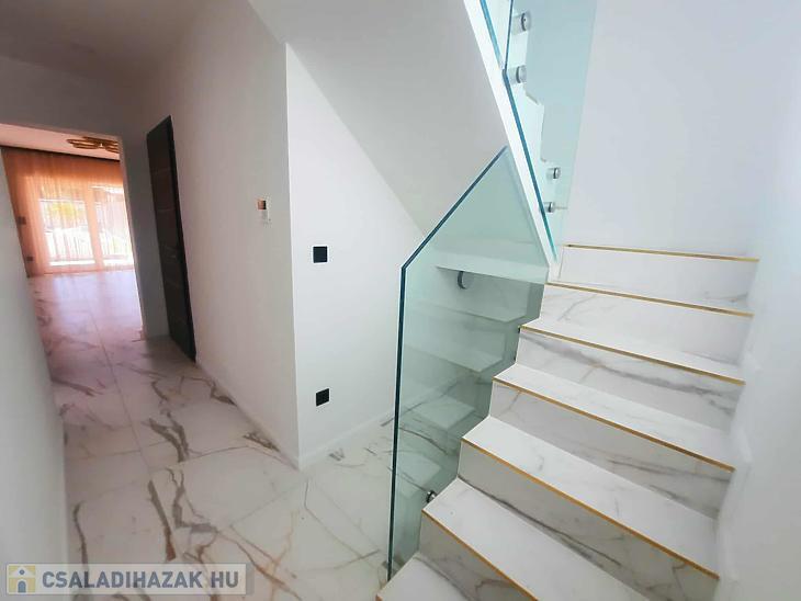 Téglából épül kétszintes családi ház. A házban okos otthon rendszer, kamerarendszer és elektromos kapu lett kialakítva. A ház minden helyiségében hűtő-fűtő klíma került beszerelésre. A fűtésről puffer gázkazán és hőszivattyús padlófűtés gondoskodik. A+ besorolású energetikai tanúsítvánnyal rendelkezik. A 326 nm-es mediterrán stílusú kertben egy jakuzzi is helyet kapott. A bent lévő bútorzat és gépesítés a vételár részét képezi.