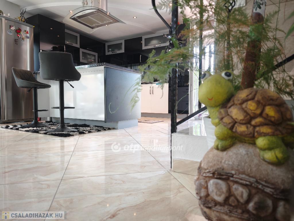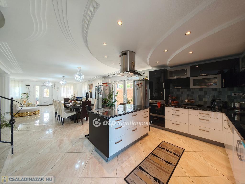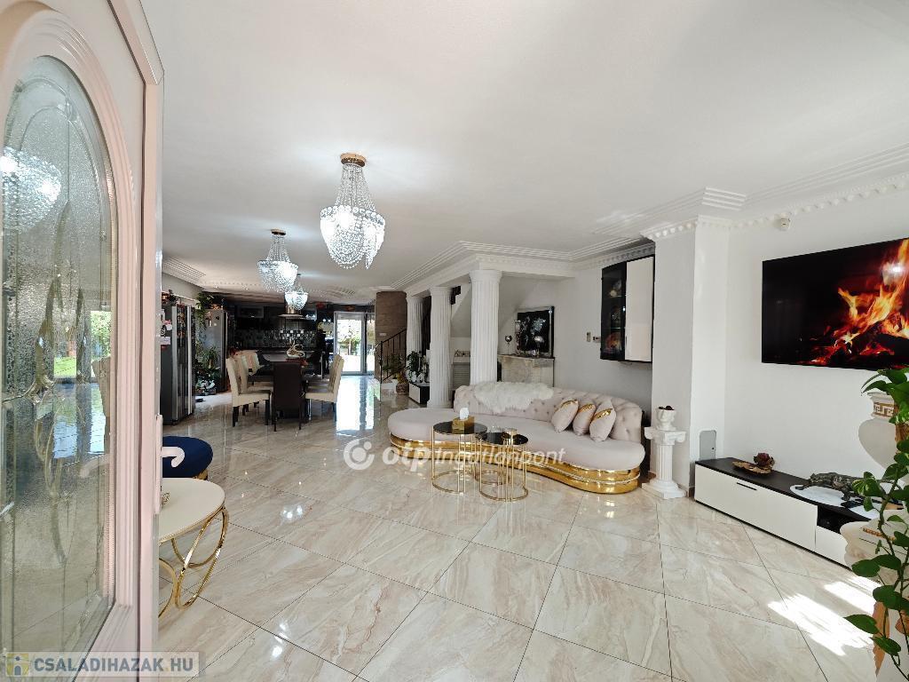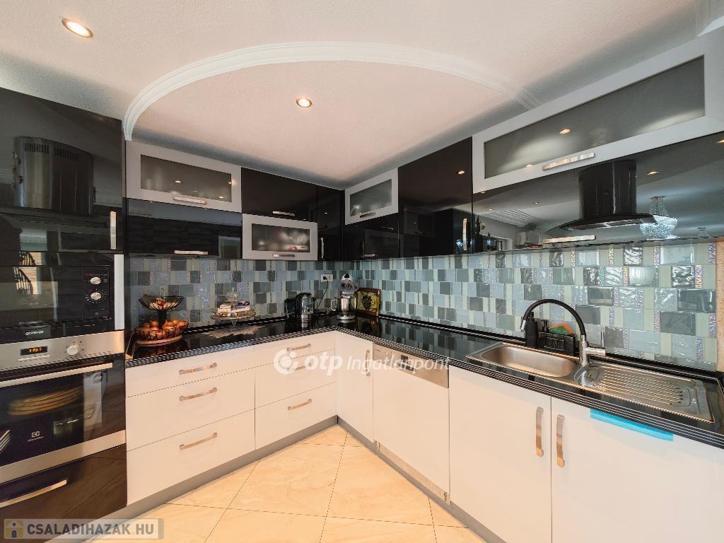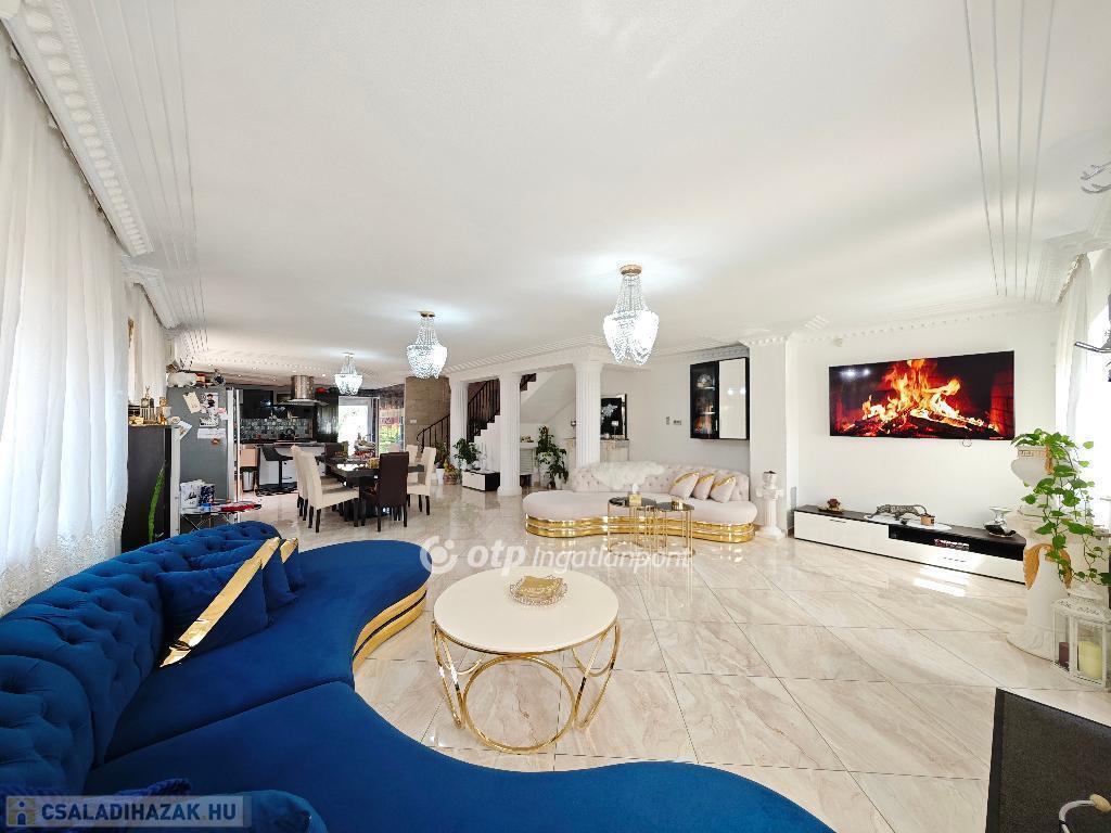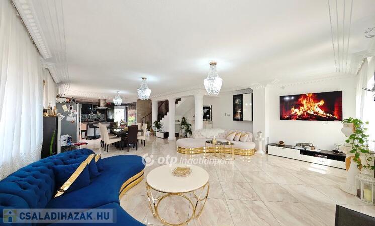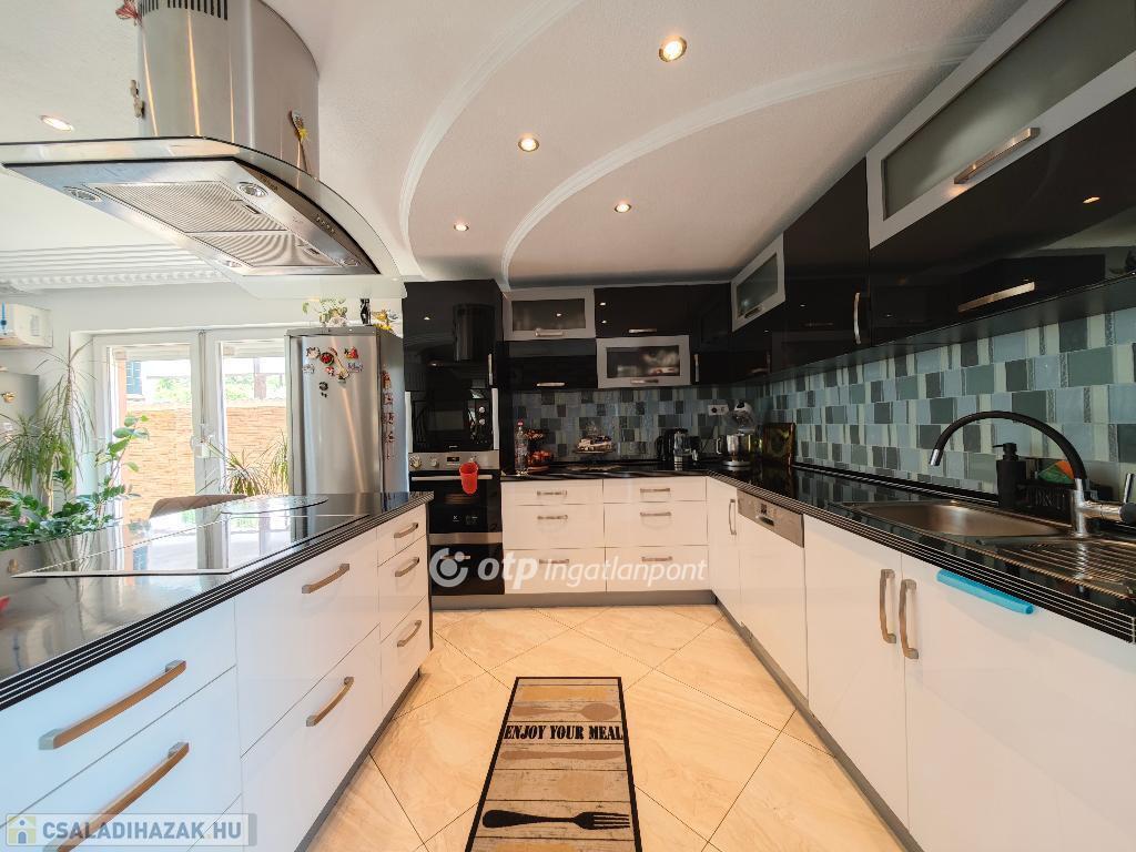 Kétszintes, duplakomfortos, gépesített amerikai-konyhás nappalival és 4 hálószobával rendelkező, berendezett, bútorozott családi ház eladó Budapest XV. kerületében.