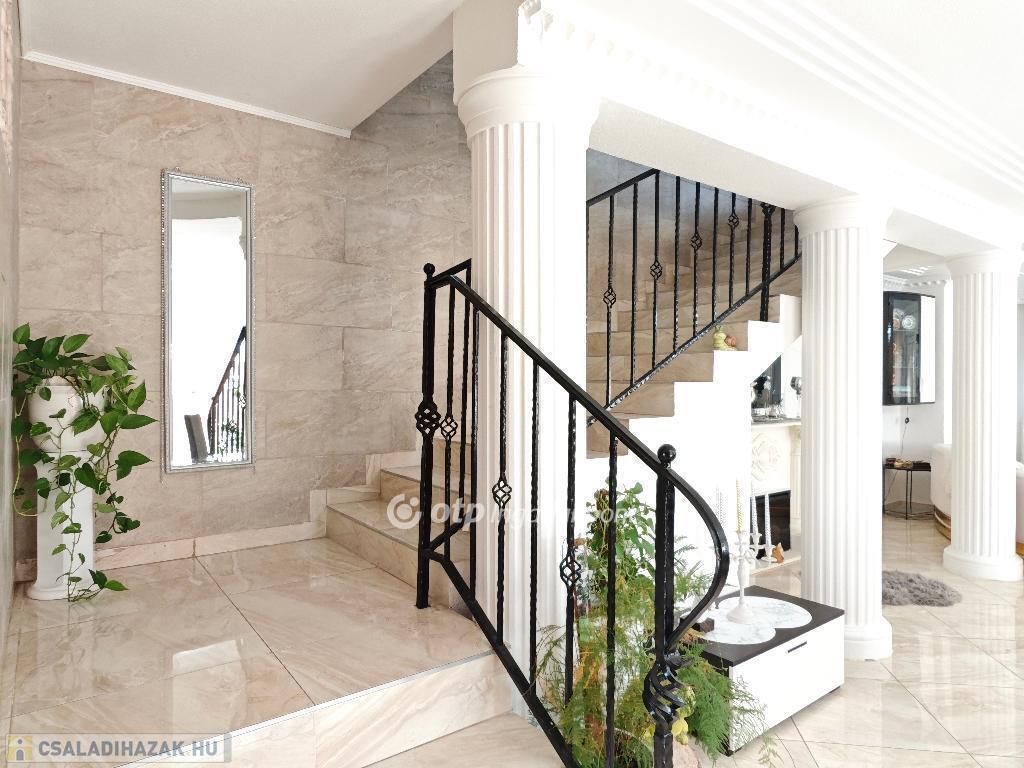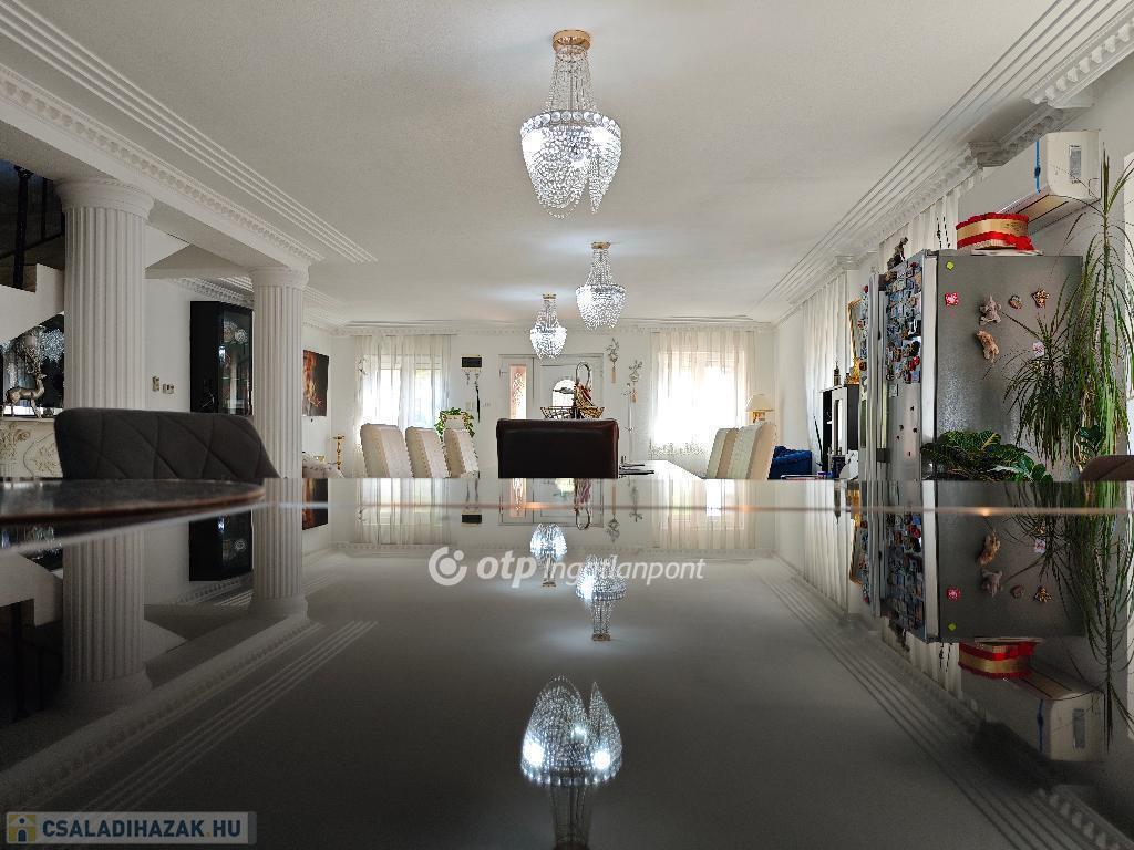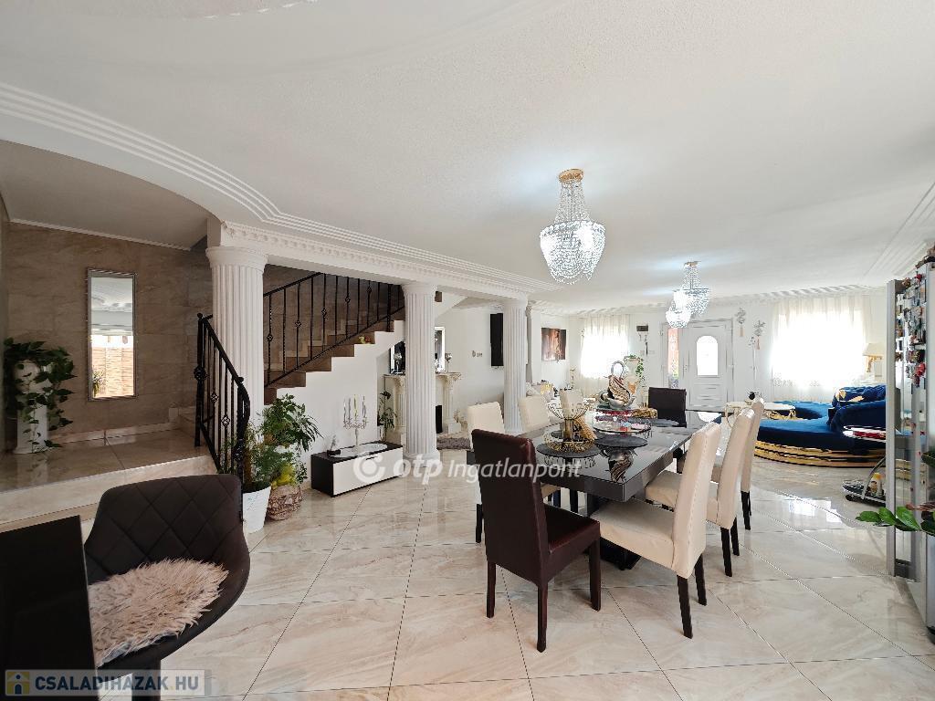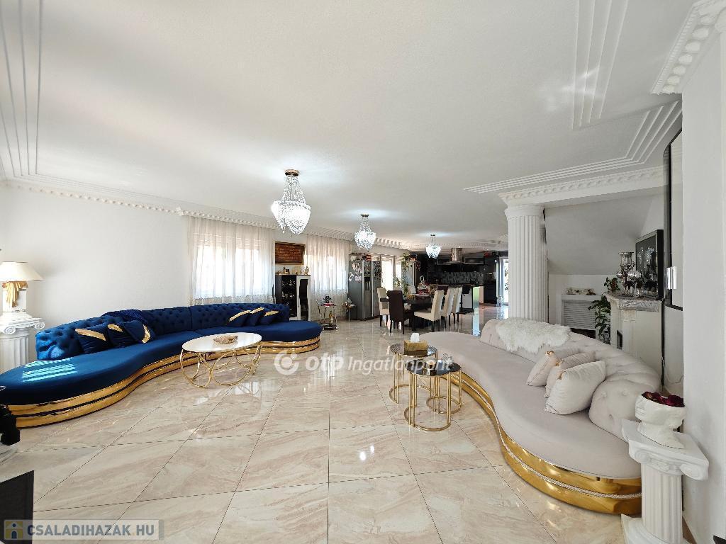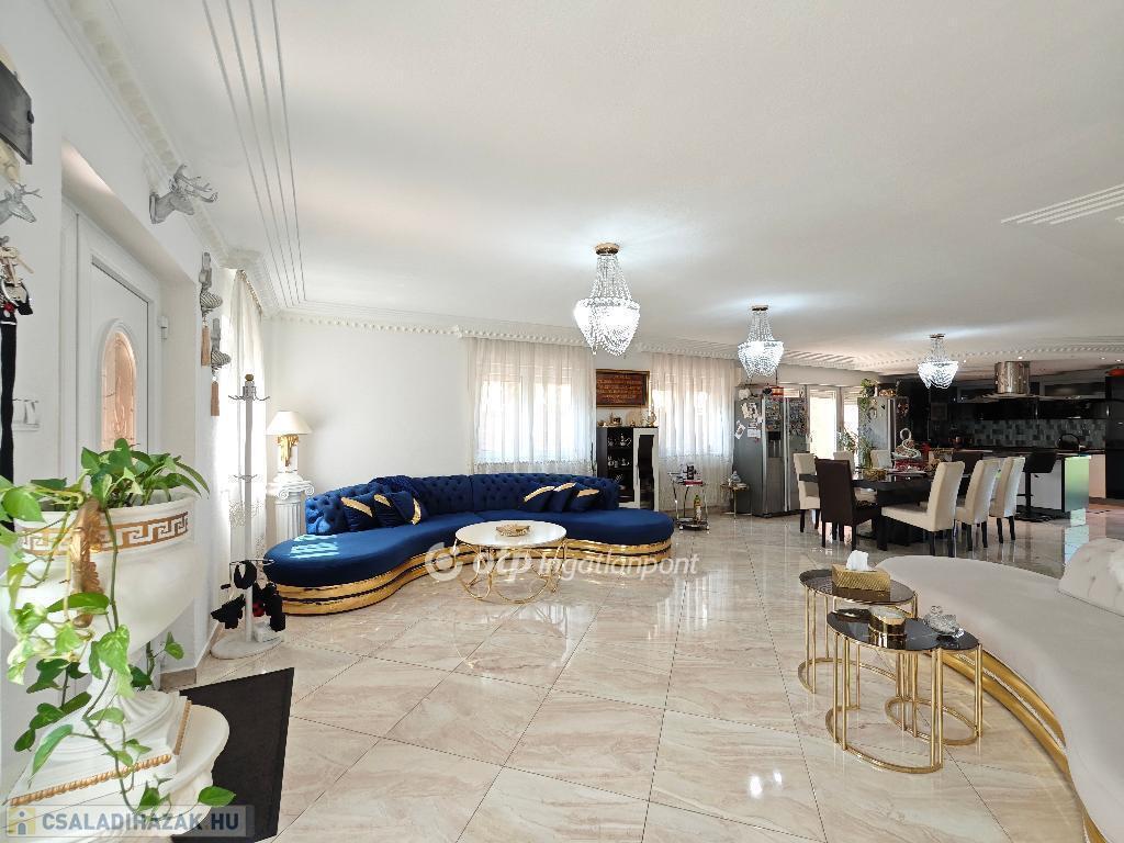 Kétszintes, duplakomfortos, gépesített amerikai-konyhás nappalival és 4 hálószobával rendelkező, berendezett, bútorozott családi ház eladó Budapest XV. kerületében.