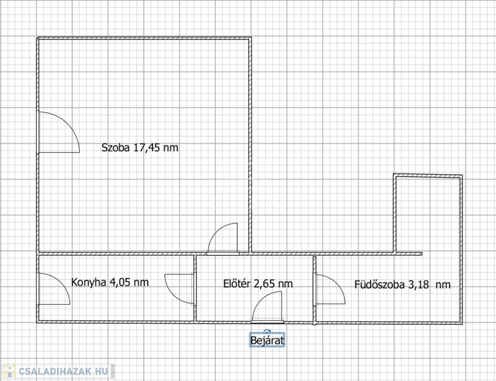 Az épület az 1960-as években készült, 10 cm vastag EPS hőszigeteléssel és vasbeton födémmel rendelkezik. Műszaki állapota jó, esztétikai szempontból átlagos. Az ingatlan elrendezése magában foglal egy 17,5 nm-es lakóteret, egy 4 nm-es konyhát, egy 3,2 nm-es fürdőszobát, valamint egy 2,65 nm-es előteret.