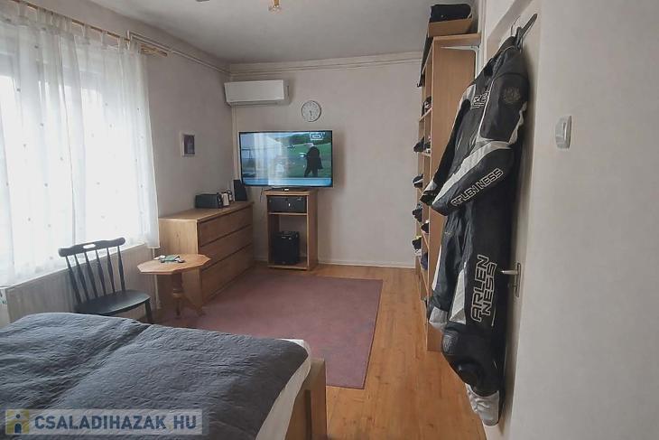 Nappali, 2 szoba, előszoba, konyha és fürdőszoba áll rendelkezésre. A teljes vízhálózat cserélve lett, a villanyvezetékek a nappali kivételével szintén újak. A fűtésről Bosch kombi cirkó és lapradiátorok gondoskodnak. A nappaliban egy 2 éves hűtő-fűtő klíma is felszerelésre került. A nyílászárók többsége műanyag, hőszigetelt, redőnnyel vannak ellátva. Igény esetén a tetőtér beépíthető, a betonfödémnek köszönhetően, akár egy teljes szint is kialakítható.