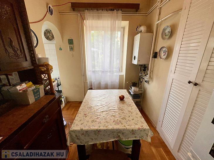 XV. KERÜLETBEN: KÖZPONTHOZ KÖZEL, CSENDES UTCÁBAN, JÓ ÁLLAPOTÚ, 61 M2, 2 SZOBÁS HÁZRÉSZ, 200 M2 KÖZVETLEN KERTKAPCSOLATTAL, 10 M2 TÁROLÓVAL, AUTÓBEÁLLÓVAL, TÁGAS TERASSZAL.