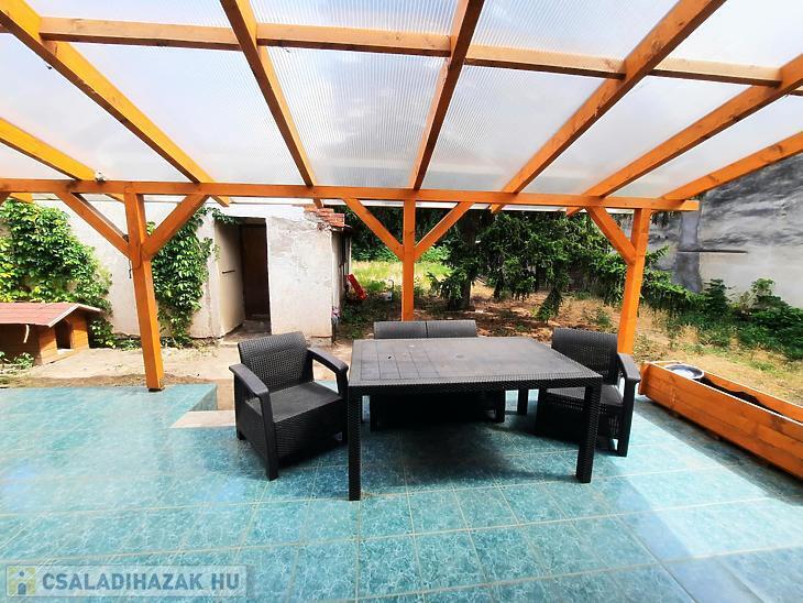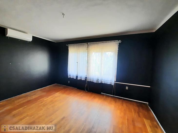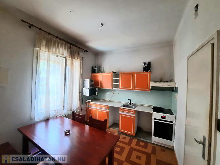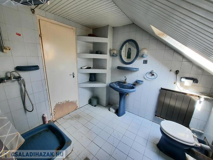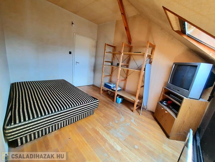 A 2 generációs családi házból leválasztott egység felújítandó. A földszinten egy nappali, étkezős konyha, kamra, fürdőszoba, külön mosdó található és a lépcsőfeljáró alatti kis dolgozószoba található. A tetőtérben 3 hálót és egy fürdőt alakítottak ki. Saját villanyórával rendelkezik. A fűtést a saját pincében elhelyezett vegyestüzelésű kazán és egy gázkazán is biztosíthatja, a melegvízről bojler gondoskodik. Elektromos tolókapu nyílik az udvarra, ahol autóbeállási lehetőség biztosított, de garázs is található az udvarban