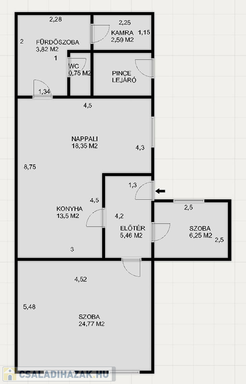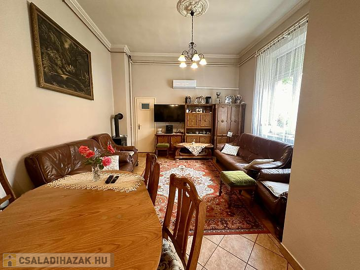 A házrészben amerikai konyhás nappali, 2 szoba, előszoba, kamra, fürdőszoba és mellékhelyiség található. 2003-ban a burkolatok, víz-, villanyvezetékek cserélve lettek, a kondenzációs gázkazán és a lapradiátorok pedig 2023-ban. Hűtő-fűtő klíma és cserépkályha is rendelkezésre áll. Tartozik a lakáshoz egy 13,5 m2 pince, 12 m2 tárolóval, autóbeálló és 200 m2 kertrész.