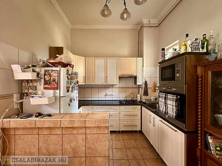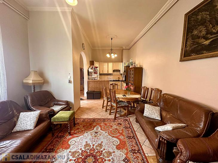 XV. KERÜLETBEN: KÖZPONTHOZ KÖZEL, CSENDES UTCÁBAN, JÓ ÁLLAPOTÚ, 75 M2, AMERIKAI KONYHÁS NAPPALIS, 2 SZOBÁS HÁZRÉSZ, 200 M2 KERTTEL, 13 M2 PINCÉVEL, 12 M2 TÁROLÓVAL, AUTÓBEÁLLÓVAL.