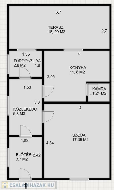 Konyha, 2 szoba, fürdőszoba áll rendelkezésre. A nyílászárók műanyagok, hőszigeteltek. A fűtésről kombi cirkó (Bosch) kazán gondoskodik és lapradiátorok. Van bővítési lehetőség, igény szerint az emelet beépítésével kb. 140 m2-esre bővíthető a ház.