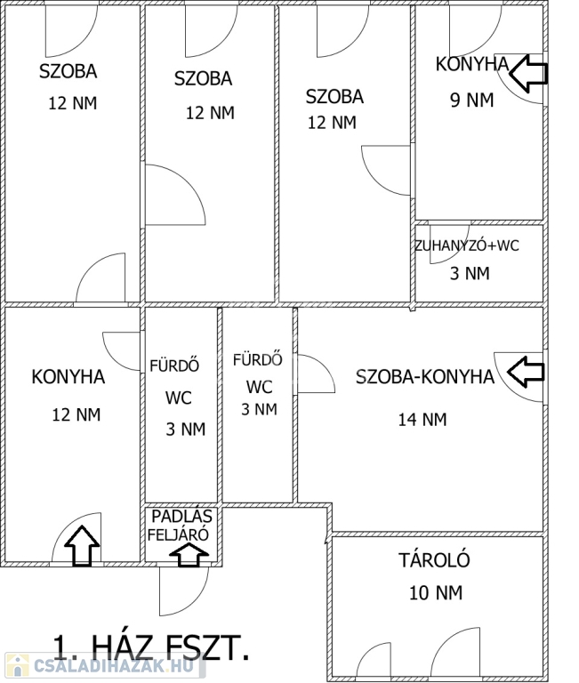 fekvésű, 3 házrésszel rendelkező, 200 nm-es, 9 szobás, konyhás,