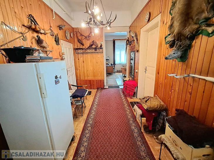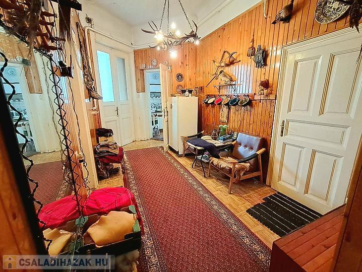 Az I. generációban 3 szoba, étkezős konyha, előszoba, kamra, fürdőszoba és terasz található. A II. generációs részben konyha, szoba és fürdőszoba került kialakításra. A víz-, villanyhálózatot cserélni kell. A fűtést gázkazán biztosítja, lapradiátorok adják le a hőt. A burkolatok közepes állapotúak. A két rész külön bejárattal rendelkezik. Egy 15 m2-es terasz, egy 25 m2 pince és több melléképület áll rendelkezésre. Egy kisebb méretű autóval be lehet állni a telekre.