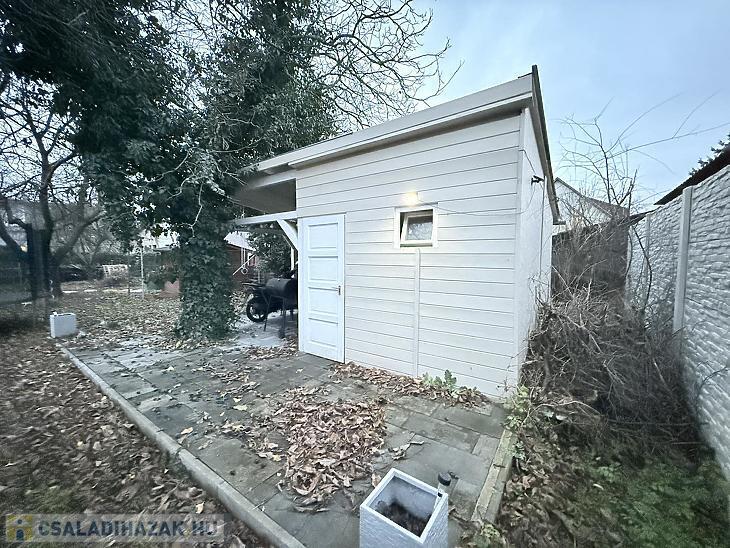 Az ingatlan jelenlegi elrendezése 2 tágas szoba, étkezős konyha, kamra, fürdőszoba, illetve külön mellékhelyiség is található. A fűtésünkről gázkazán gondoskodik, illetve az egyik szobába beszerelésre került egy Inverteres klíma is. A villanyvezetékek rézből vannak és a bővítés is megtörtént. A ház alatt egy 20 m2-es pince található, ahol a kazán mellett tárolóhely áll rendelkezésre. Az épület előtt 12 m2-es terasz biztosít kellemes helyet a pihenésre. A kert végében egy 36 m2-es, újabb építésű fa tárolóház található, melynek egyik fele praktikus tároló a másik fele pedig egy hangulatos, fedett kiülős rész, amely kiválóan alkalmas a kikapcsolódásra. A tágas udvarba több autóval s be lehet állni, a néhány éve épített elektromos úszókapun keresztül.