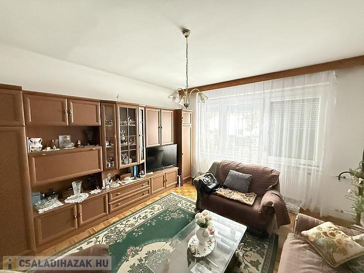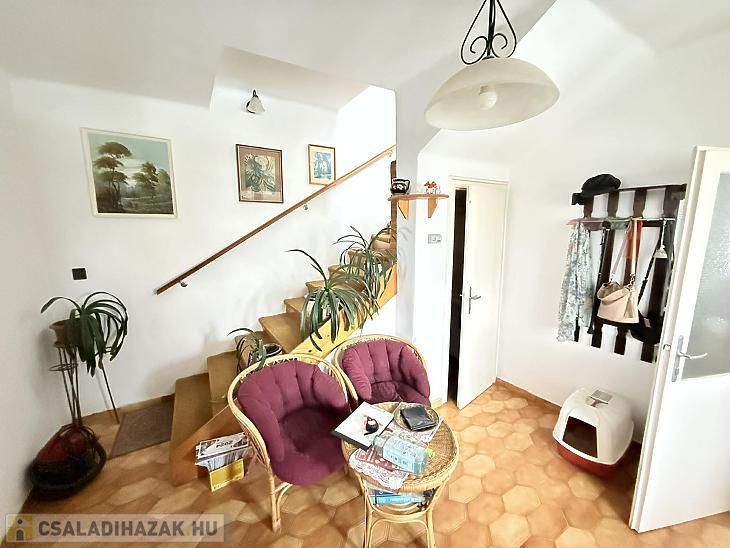 Az ingatlan praktikus elrendezésű a földszinten tágas, világos nappali, külön konyha–étkező és spejz található.