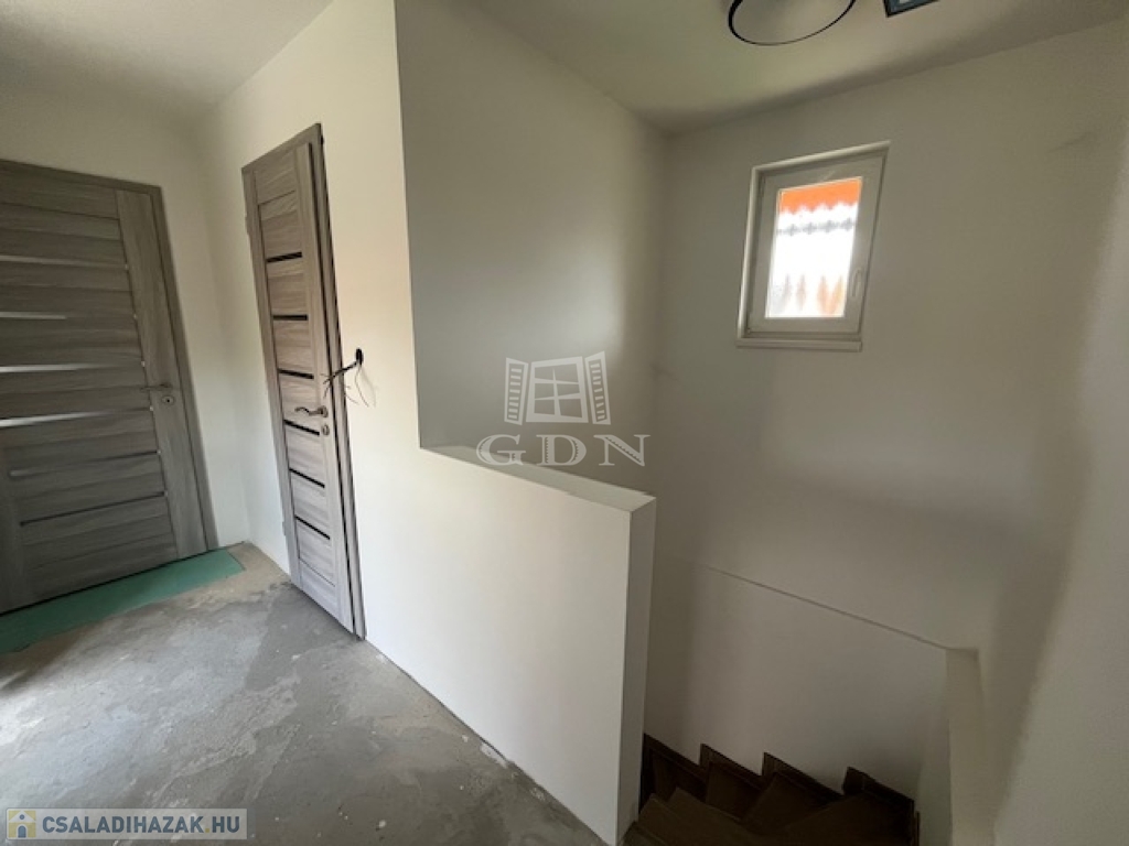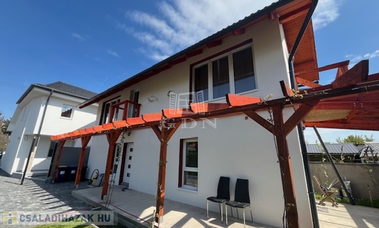 Az ingatlan modern kialakítású, és kiválóan illeszkedik a környezet kertvárosi jellegéhez.