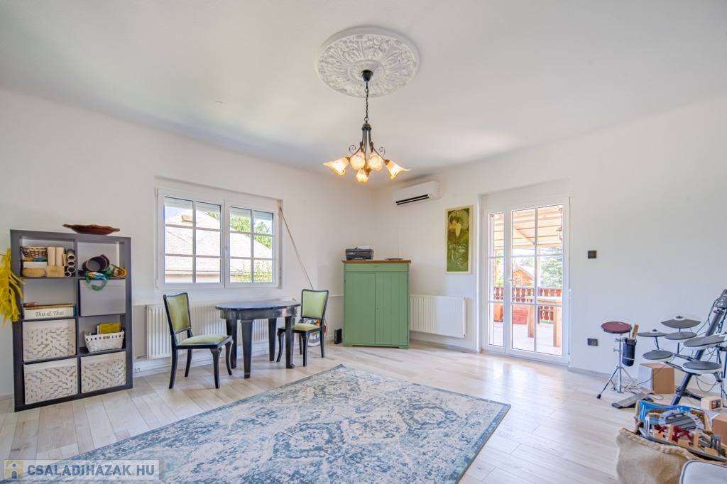 Műanyag nyílászárók, kazánfűtés, valamint a szobákban klimatizálás teszi komfortossá az életet. A burkolatok, a vízcsövek és az elektromos kábelek is az elmúlt évben lettek cserélve, ahogy a konyha is új.
