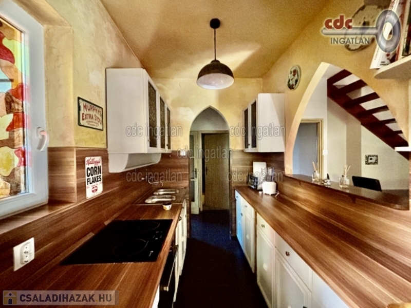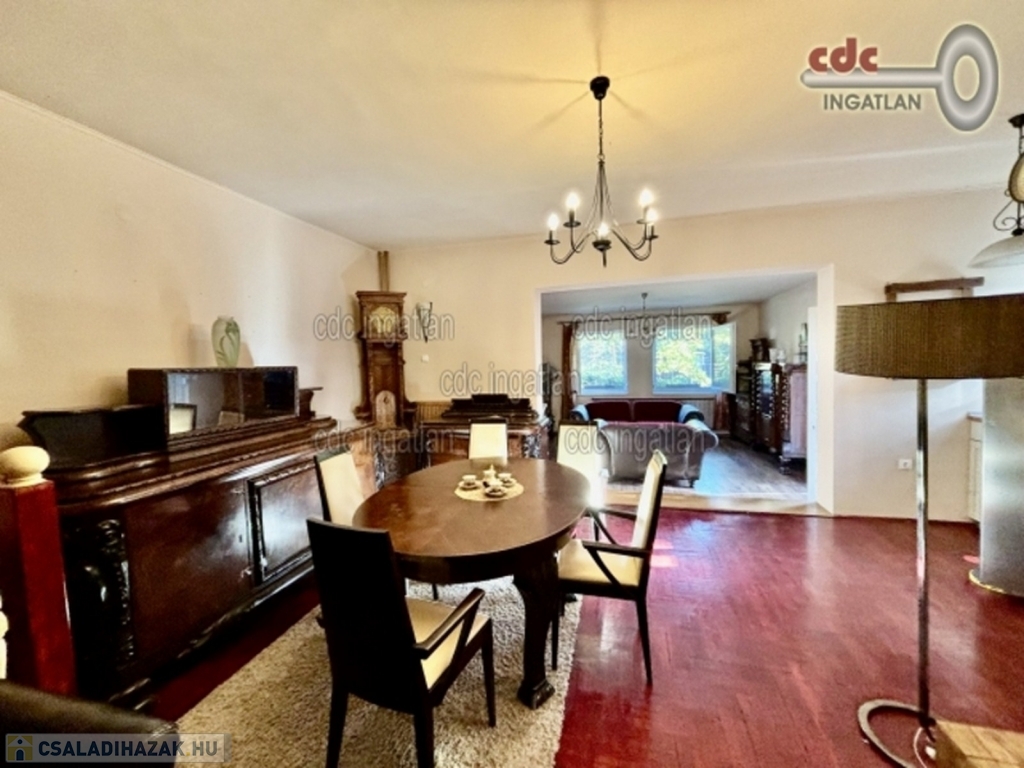 Kitűnő vétel!!! Az ingatlan Ómátyásföld frekventált, csendes mellékutcájában található, a közelben általános iskola, gimnázium, közértek tömkelege, buszmegálló gyalogos távolságra elérhetőek. A 913 m2-es telek nagyságára tekintettel akár további ház építés, vagy nagyobb méretű medence kiépítése is lehetséges. Az ingatlan 8 évvel ezelőtt teljes felújításon esett át (nyílászáró csere, új tető, hőszigetelés, fürdőszoba felújítások, bővítés, kandalló kiépítése, egyéb munkálat zajlott), a tavalyi évben a teljes villanyvezeték hálózata felújításra került. A ház gyorsan birtokba vehető, szép , költözhető állapotban van. Műszaki adatok: -38 cm vastag POROTHERM tégla -BRAMAC betoncserép -10 cm vastag DRYVIT hőszigetelés -hasznos alapterület: 212,72 m2 -a ház alatt 24,6 m2 alapterületű pince található -a ház inverteres klímával felszerelt -kandalló (fatüzeléses) -fűtés: gázkazán és radiátorok -zárt garázs + fedett kocsibeálló, azaz két autó beállására alkalmas -elektromos kapu -riasztó -két terasz Ami egy család további kényelmét szolgálja: külön nyári konyha a kerti partikhoz, nagyobb méretű fészer a szerszámok tárolásához. A csodálatosan zöld, hangulatos díszkerten felül bőségesen alma, körte, füge, málna , szilva, dió terem minden évben a család nagy örömére.