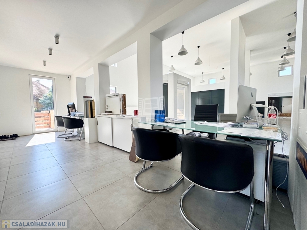 XVI. kerületben, karnyújtásnyira Zuglótól és az Örs vezér terétől, kiváló közlekedés és ellátottság mellett, Rákosszentmihály központi részén, könnyedén akár tehergépkocsival is megközelíthető, kiváló adottságokkal bíró, 802 m2-es saroktelken, 2008-ban, tégla és könnyűszerkezetes falazattal épült, szigetelt, 208 nm-es, 2 szintes, az alsó szinten 5 méteres belmagasságú hatalmas utcafrontra néző ablakokkal rendelkező tágas üzlettér, bemutatóterem és mellékhelyiségek, az emeleti szinten tárgyaló/ iroda, valamint öltöző és vizes blokkal ellátott, napos világos fekvésű, kombinált gázcirkó fűtésű, jó állapotú, számtalan üzleti tevékenységre szabható, klimatizált üzlethelyiség, 8-10 gépkocsi számára alkalmas felszíni beállóval, 5 m2-es pincével, kulturált környezetben eladó.