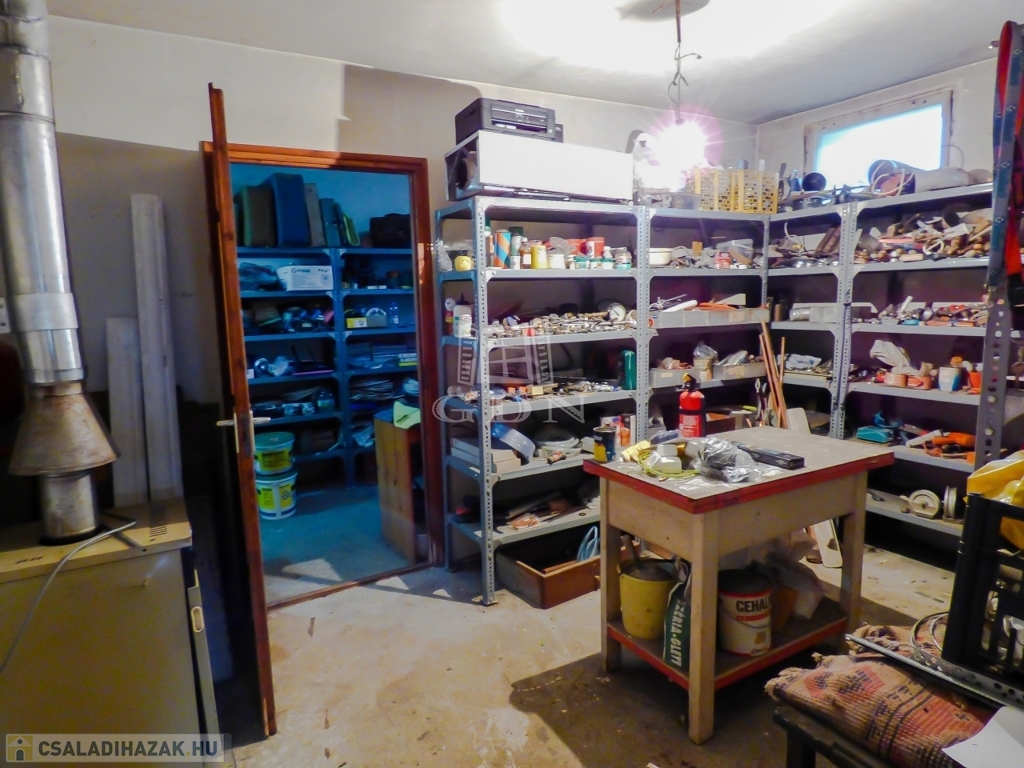 A pinceszinten iroda, amely akár hobby szobaként is funkcionálhat, tárolók, kazánhelyiség, wc, kézmosó és egy fűthető dupla garázs található.