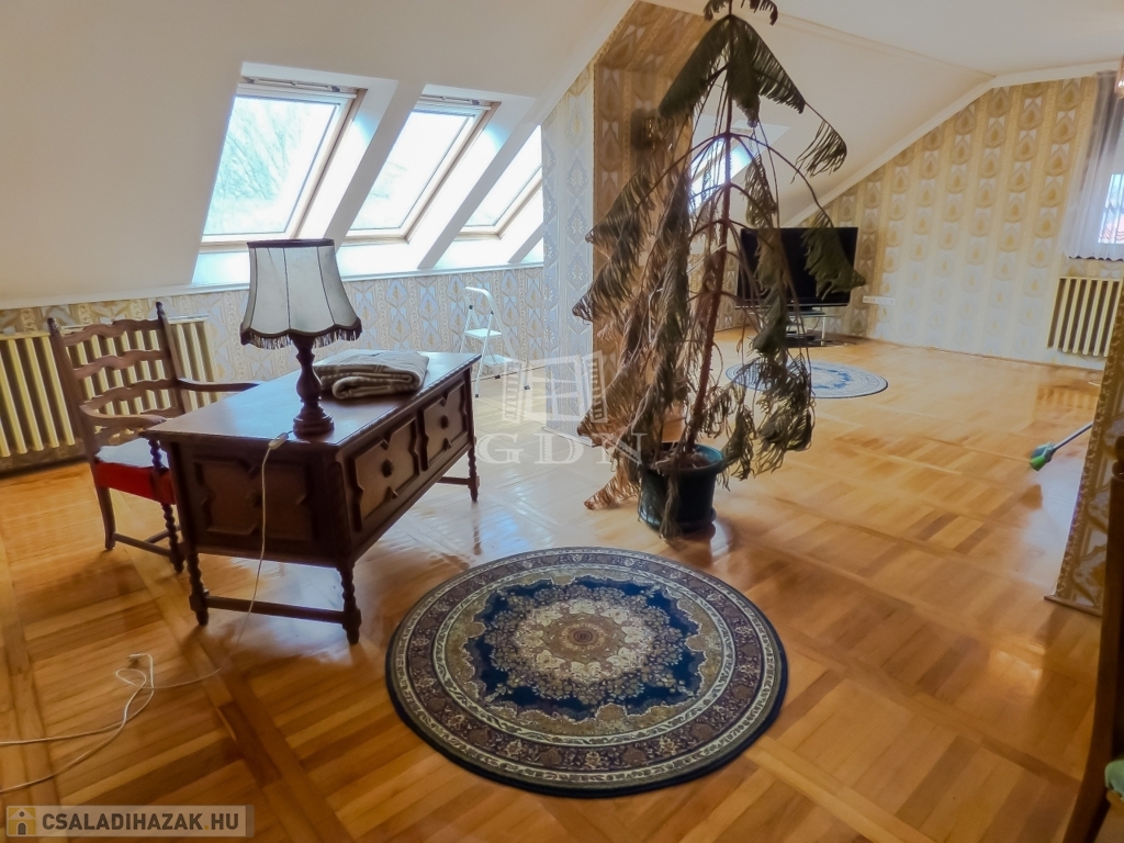 XVI. kerületben, Rákosszentmihályon a Pálya utcában, kertvárosi környezetben, 527 nm-es telken lévő, 1980-as években épült, közepes állapotú, vasbeton födémes, három szintes, szigetelt (10 cm dryvit), bruttó 318 nm-es, 5 szobás (6-7 szobássá alakítható), Dél - Keleti fekvésű, 2 GENERÁCIÓS, gáz cirkó fűtéses (radiátoros hőleadással), riasztóval felszerelt, rugalmasan birtokba vehető, TEHERMENTES ikerház fél eladó.